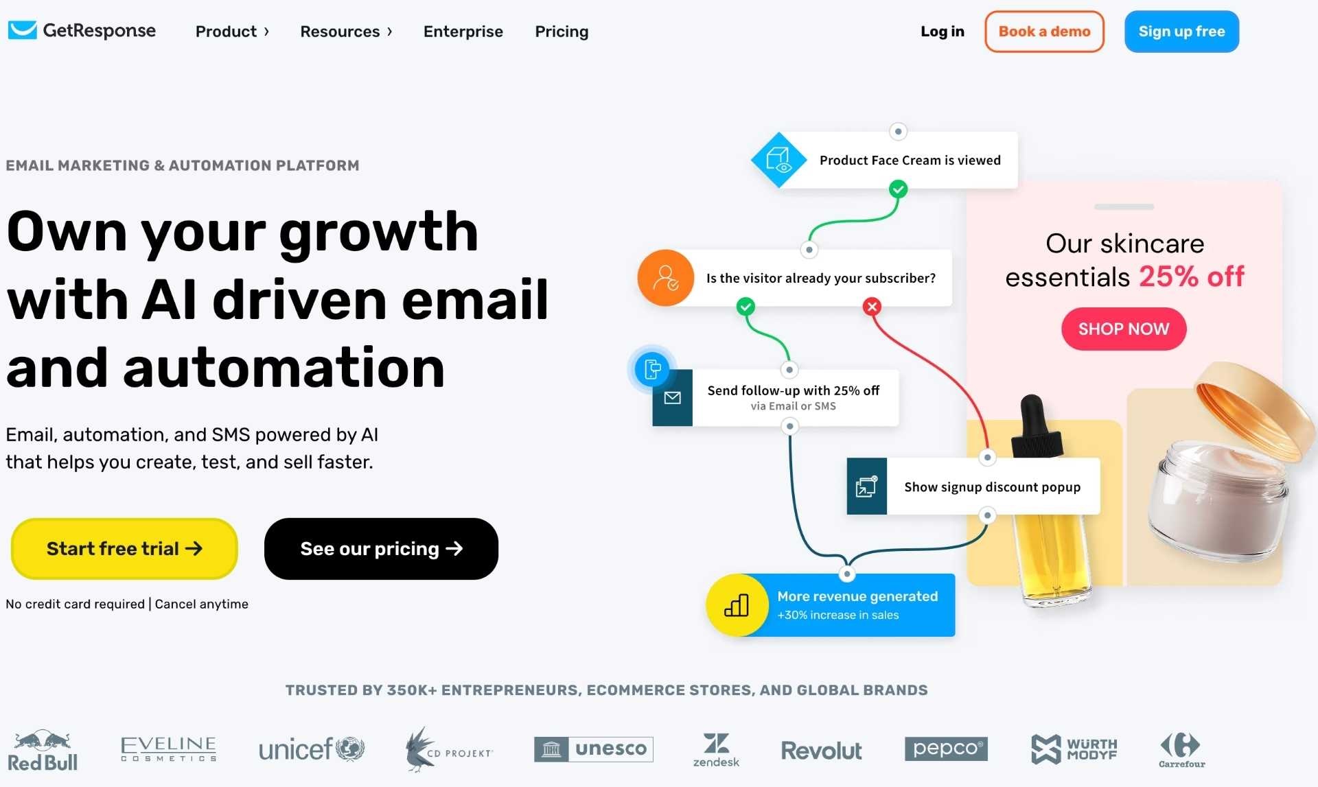 GetResponse is an all-in-one marketing platform (email + automation + landing pages, plus extras like webinars) with ecommerce integrations and lifecycle workflowsâoften used by D2C teams who want more than just email.