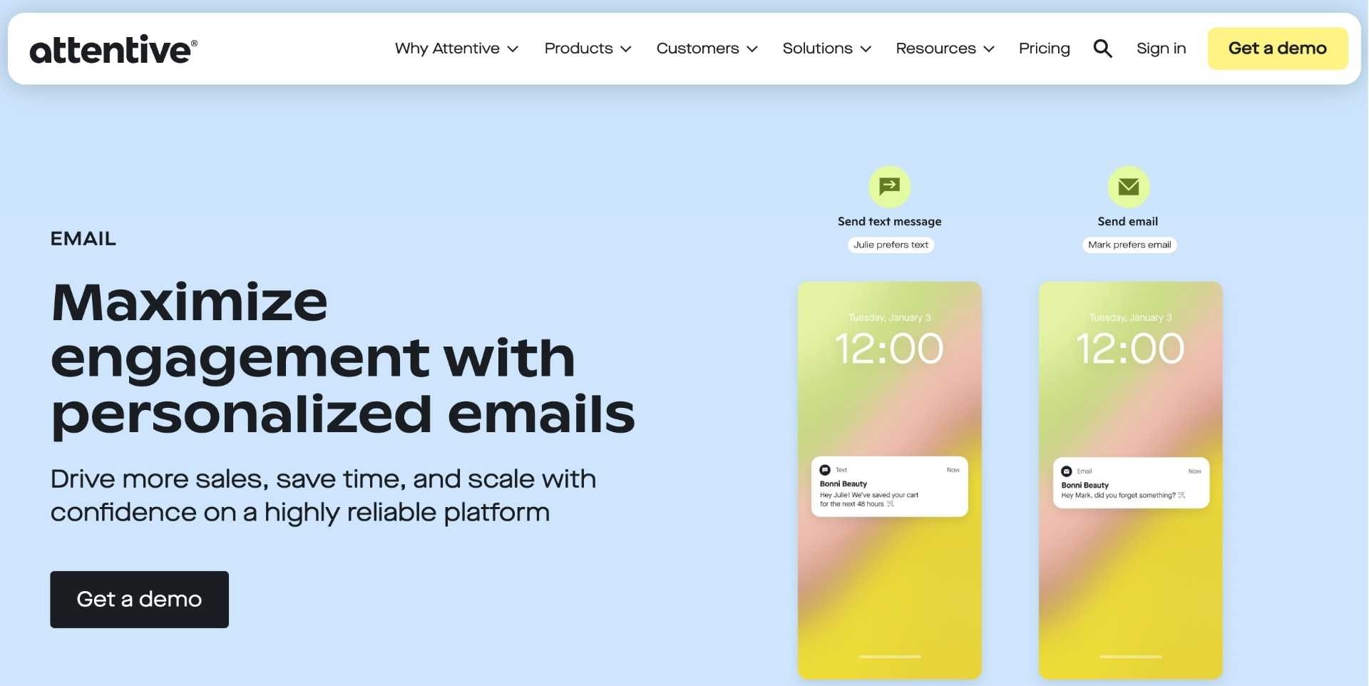 Attentive is an ecommerce-focused messaging platform known for SMS (and increasingly email), helping D2C brands run personalized campaigns and automated journeys across channels.