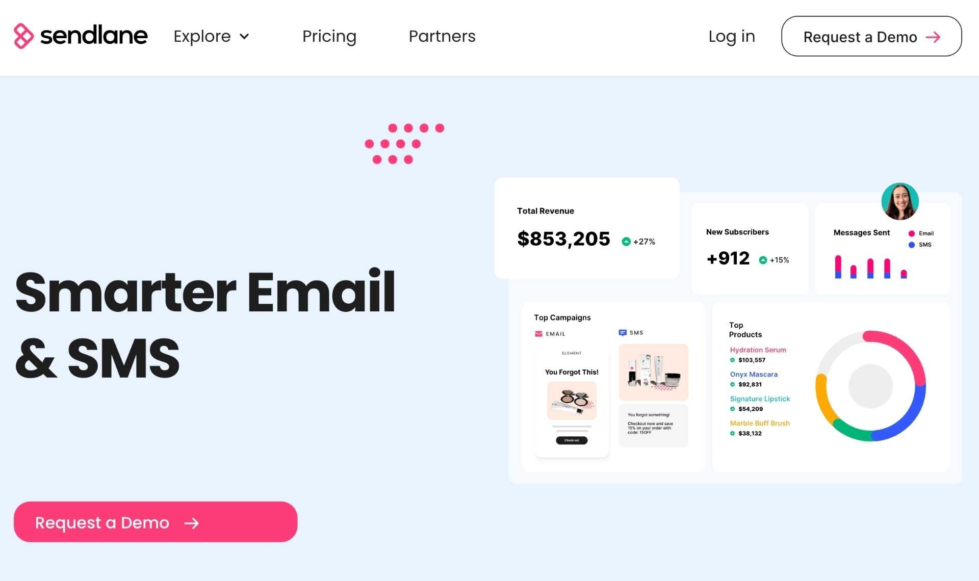 Sendlane is a D2C-oriented retention platform combining email + SMS with segmentation and automation, positioning itself as a unified retention hub (cart recovery, back-in-stock, promos).
