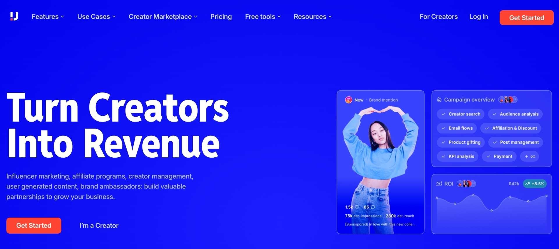 GRIN is a creator management platform designed heavily around ecommerce brands, with workflows for discovery, gifting, affiliate tracking, creator relationships, content management, and reporting. Its positioning is less about one-off influencer campaigns and more about helping D2C teams build scalable creator programs tied to ecommerce operations and ROI tracking.