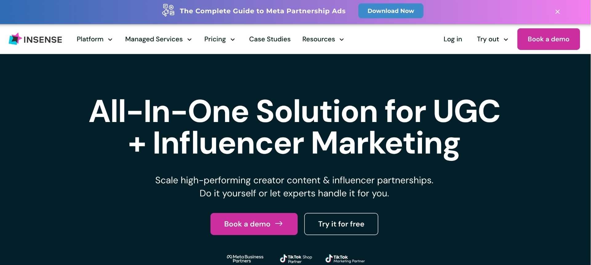- Managed Services: Custom pricing. Insense positions this as a done-for-you option covering strategy, UGC production, influencer seeding, post-production, and campaign execution.