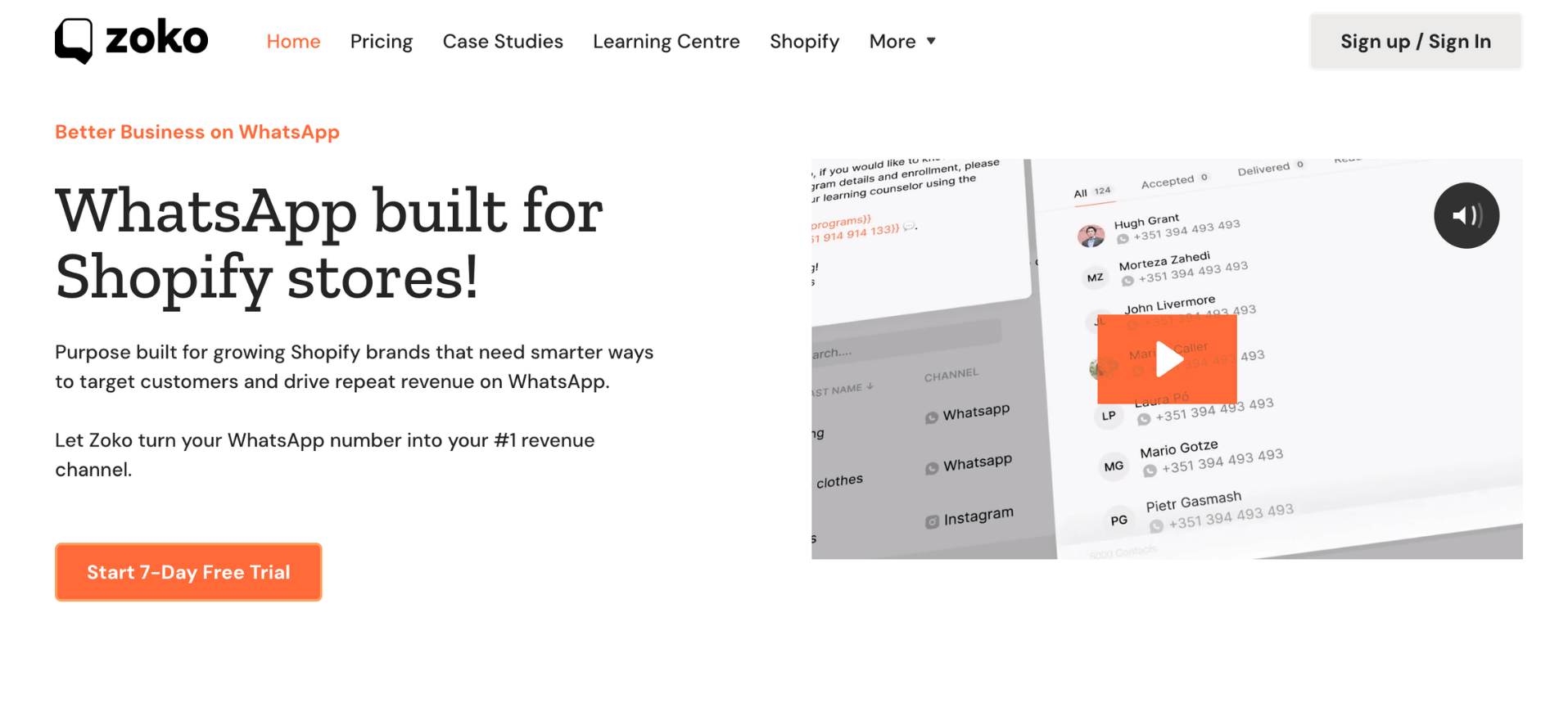 Zoko connects your Shopify store to the WhatsApp Business API so you can run broadcasts, automate lifecycle flows (cart recovery, COD confirmation, post-purchase), and manage sales/support in a shared team inbox.